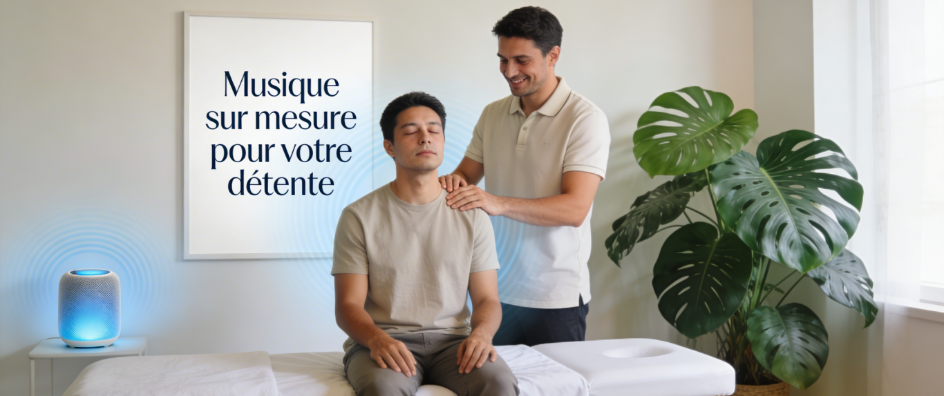 Nous composons une musique sur mesure, pensée pour sublimer l’ambiance de votre cabinet de massage.
